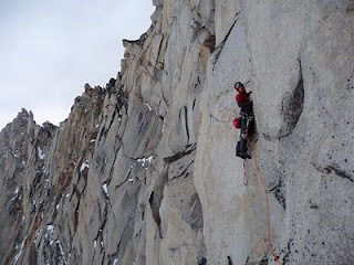 It had just dumped snow... rime ice was everywhere. After wallowing in deep snow we made it to the col between Hoja and Espada, intent upon making the FA of Hoja´s N Ridge. Snow covered mixed slabby made climbing hard and scary. It led to a pitch that I threw myself at... aidding, tooling, freeing, nothing would do. Agro... I called down to Ian that it was time to go down. Ian brought the stoke back...